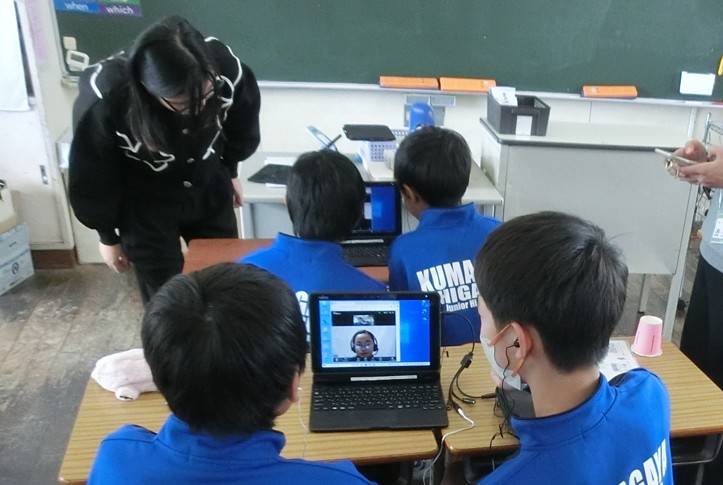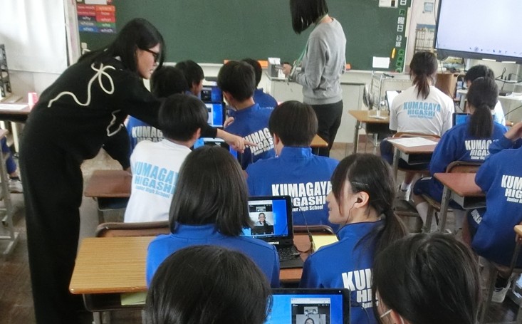 オンラインで学習を支援してくださるALTの先生に負けないくらい本校の生徒も笑顔で会話をしています!