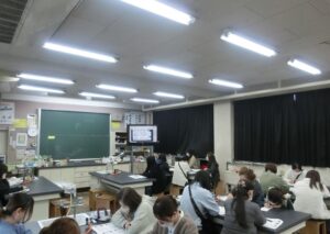 今日は、13:55から本校中庭のトミヨ池で「ムサシトミヨ繁殖調査」を実施しました。