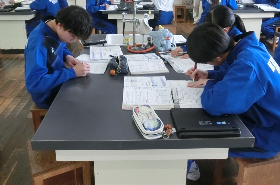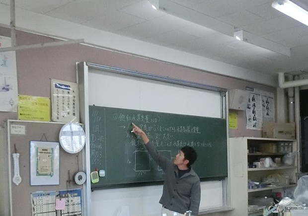 写真は、2年生の理科の様子です。定義をしっかりと抑え、「飽和水蒸気量」の学習を進めています。
