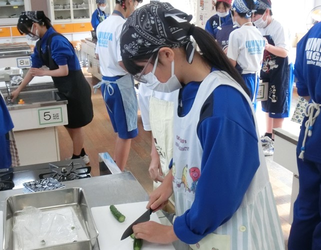 授業の様子③ 2025年11月10日 最終更新日時 : 2025年11月10日 kumagaya_edit 写真は、1年生の家庭科の授業の様子です。「きゅうり」のいろいろな切り方について考え、調理の手順と流れ、注意点を確認し実習を行います。じっくりと丁寧に取り組んでいました。