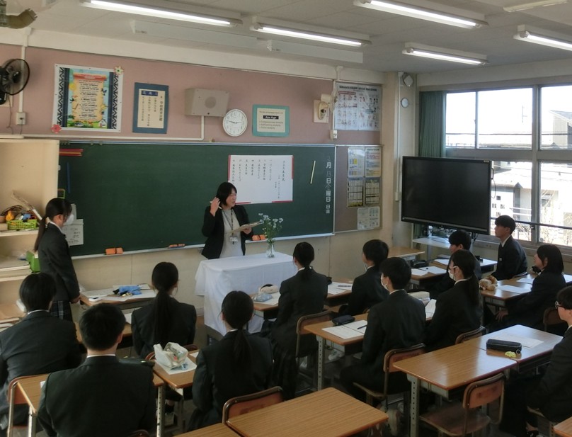 1年生は、体育館で「百人一首大会」を、2年生は8つの教室で「立志式」を行いました。