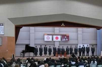 本校合唱部(有志を含む)の生徒による校歌紹介から始まりました。
