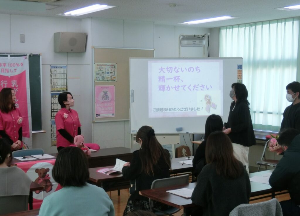 「くまがやピンクリボンの会」の方々を講師をしてお招きし、お話をいただきました。