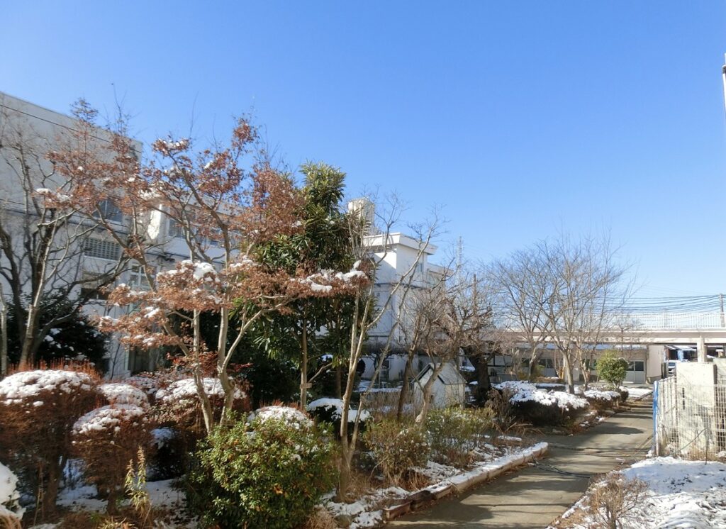 雪化粧した中庭 2026年2月9日 最終更新日時 : 2026年2月9日 kumagaya_edit 土曜日の夜から日曜日の午前中にかけて降った雪は、今朝もまだ残っています。登校時における路面の凍結が心配されましたが、生徒たちは無事に登校できました。一面が真っ白の中庭も風情を感じます。今週も生徒、職員ともに頑張ります。